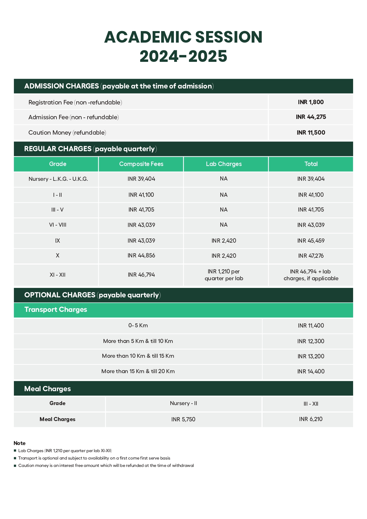 Our fee structure is transparent; no additional fee is required to be paid through the year other than the stated fees, except for any voluntary activities like out of town school trips.