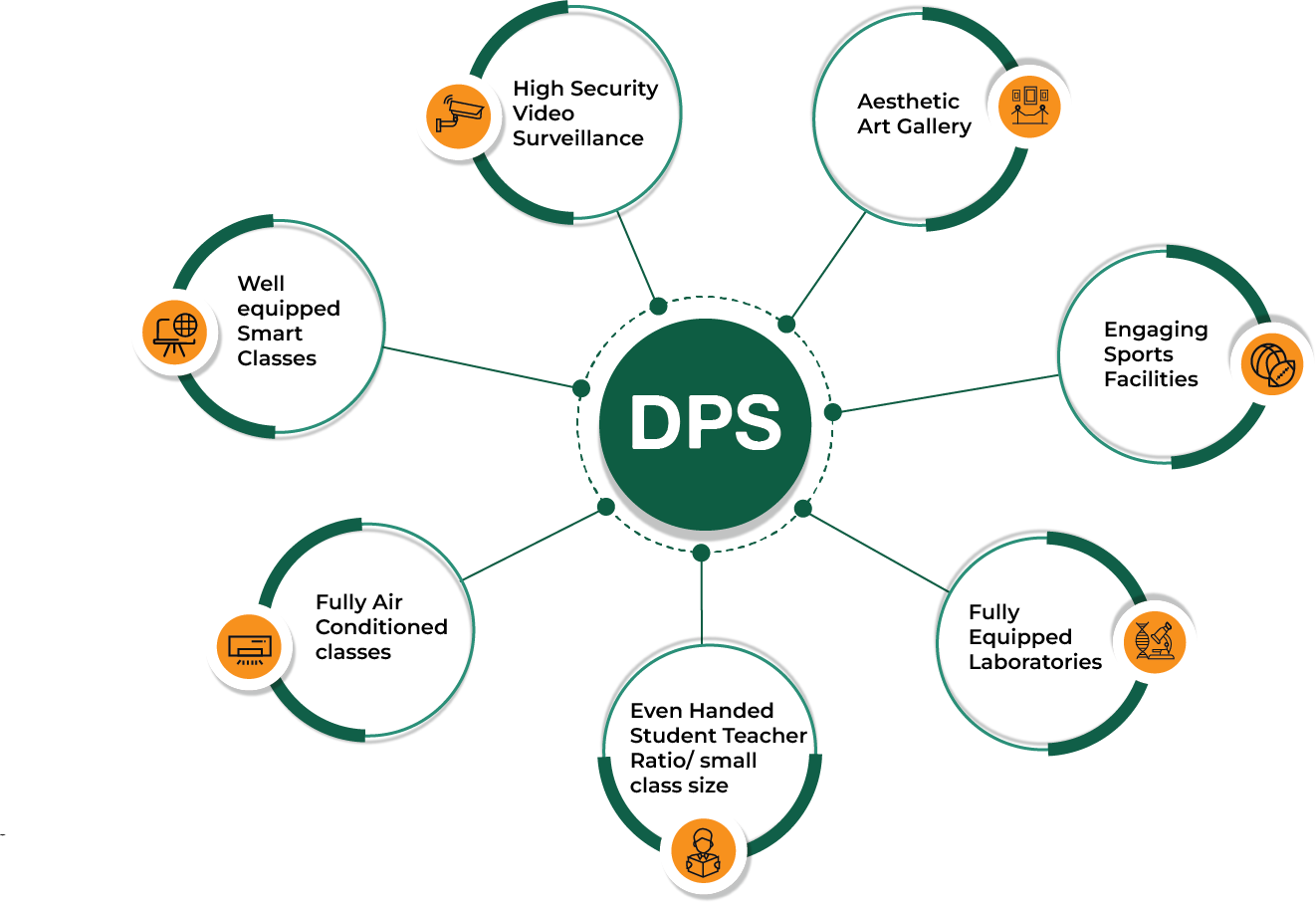 A vivacious, technologically advanced school with a pioneering campus. DPS catering to the needs of today's students. Well-equipped classrooms, sophisticated technology, and a child-friendly atmosphere provide a safe and interesting environment for young children. The school's pedagogical approach is centered on instilling a positive attitude towards learning and providing chances for intellectual and social development, creativity, and physical improvement.