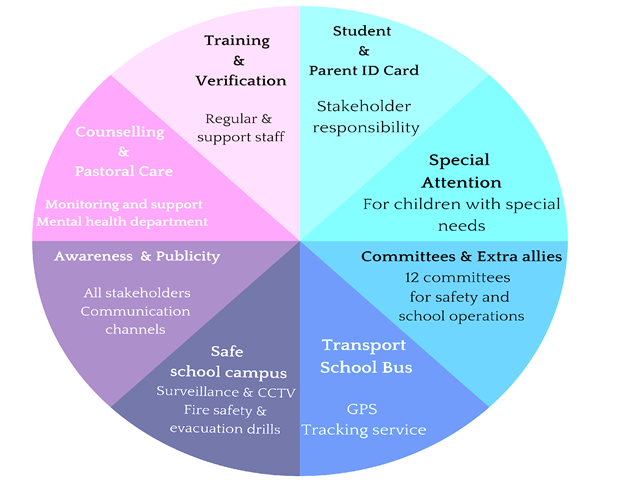 Bus safety audits are conducted to mark out the obstacles and difficulties faced by children. All school buses are inspected regularly for safety and compliance.